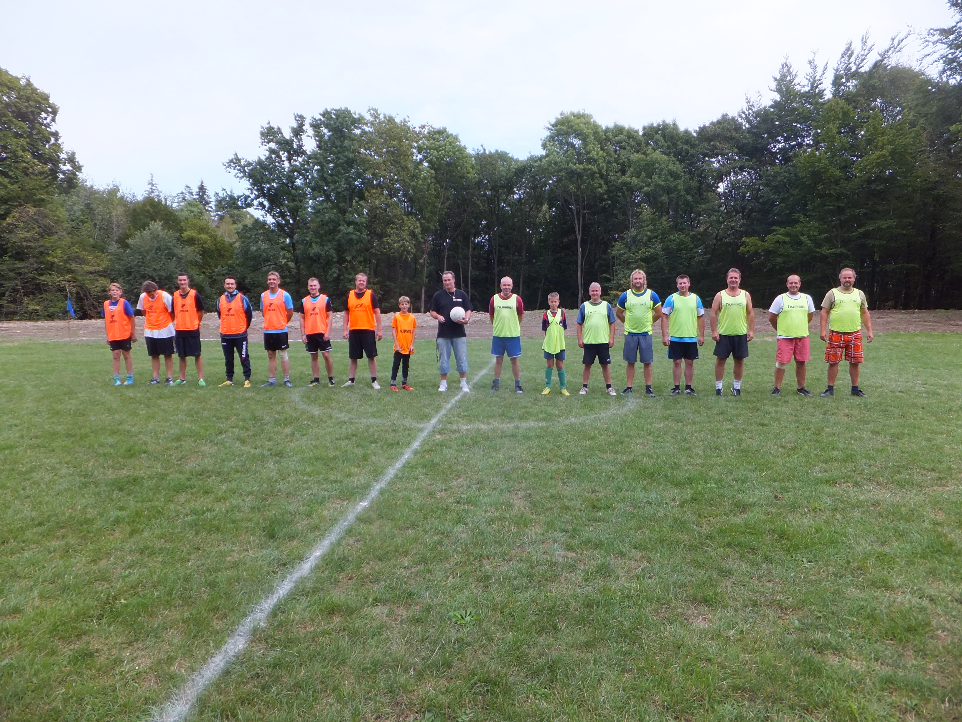 2015_0905_162438Hřiště je sice ve stavu rozestavěnosti, takže hrací plocha svými rozměry připomínala spíše tenisový kurt, ale to borcům, toužícím po „zdravém“ pohybu vůbec nevadilo a pustili se s vervou do sebe. Ti starší páni si už ale musí přiznat, že na ty mladé už tak úplně s dechem nestačí a to se projevilo na výsledku matche 9:3 pro svobodné. Výsledek ale jistě není důležitý. Důležité je, že se všichni – jak samotní hráči, tak i diváci – dobře bavili. A o tom, že atmosféra byla výborná svědčí to, že se z hřiště ozýval halas až do pozdního večera.