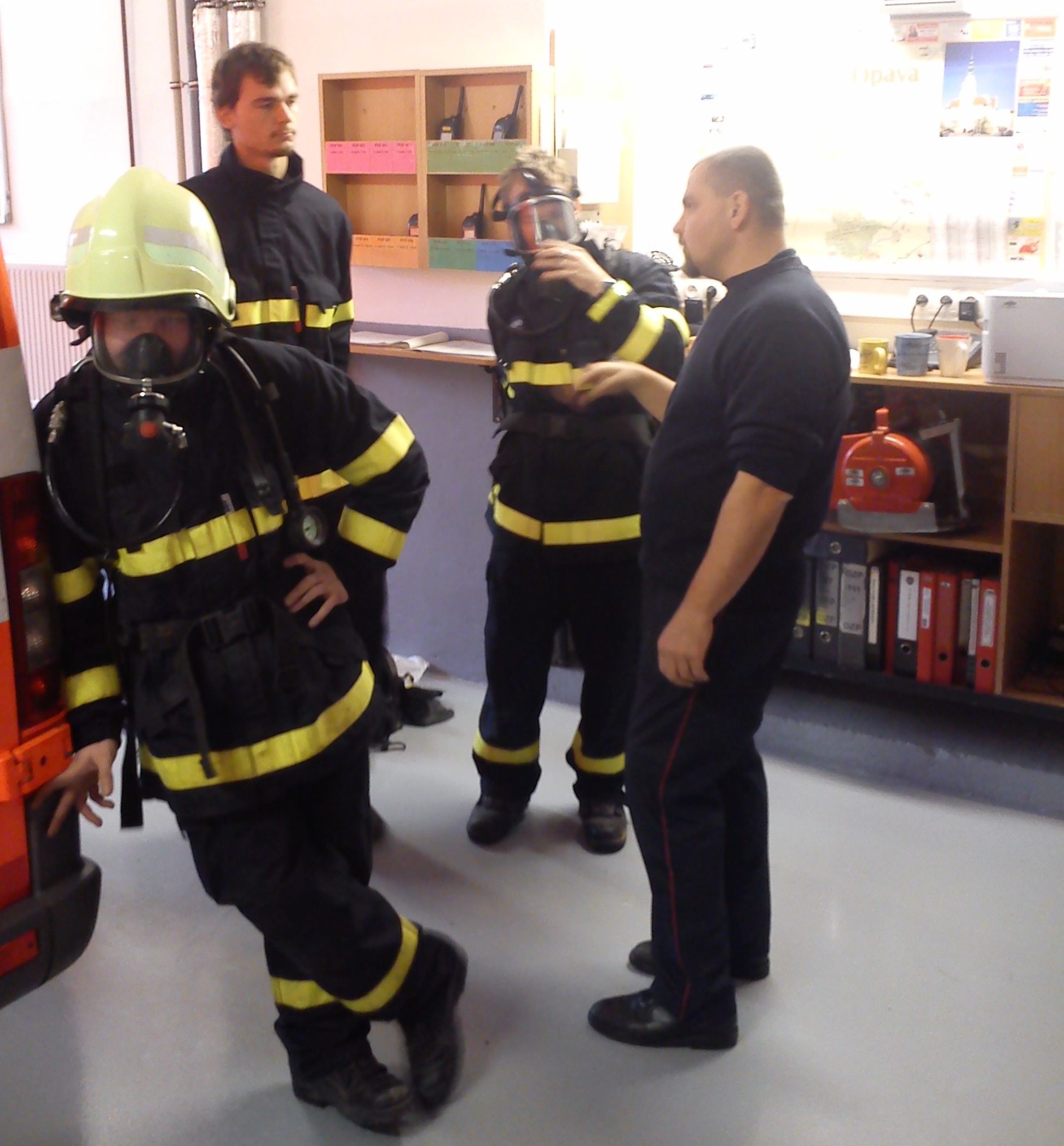 školení VJV neděli 16.11. se na stanici HZS Opava konalo další školení naší výjezdové jednotky. Zúčastnila se kompletní jednotka výjma velitele V.Jahna a hasičů R.Víchy a M.Víchy. Školení bylo nejdříve zaměřeno na poskytnutí 1. pomoci. Zde si naše jednotka vyzkoušela různé zdravotnické pomůcky a techniky pro poskytnutí 1. pomoci. Poté se naše jednotka rozdělila na 2 skupiny. Zatímco jedna se věnovala opakování slaňovací techniky a uzlování, členové, kteří mají zkoušky z dýchací techniky, absolvovali tento typ výcviku. Školení prováděl p. Tomáš Rozehnal.