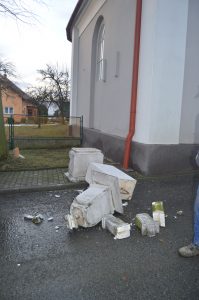 Kříž byl pádem na silnici těžce poškozen. Zejména jeho horní část – samotné tělo kříže, které se rozbilo na několik kusů.